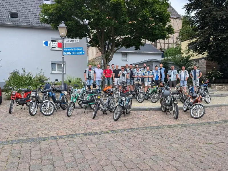 Schon am Vormittag knatterten die ersten Maschinen durchs Ort und verbreiteten einen angenehmen Duft von 2-Takt-Gemisch in der Luft. Insgesamt 18 Mofas der Wild Boys fuhren nach Dauborn, wo sich mit den beiden anderen Mofaklubs getroffen wurde. Ein paar Lose Schrauben und ein fehlender Auspuff später kamen die Wild Boys rechtzeitig zum vereinbarten Treffpunkt.